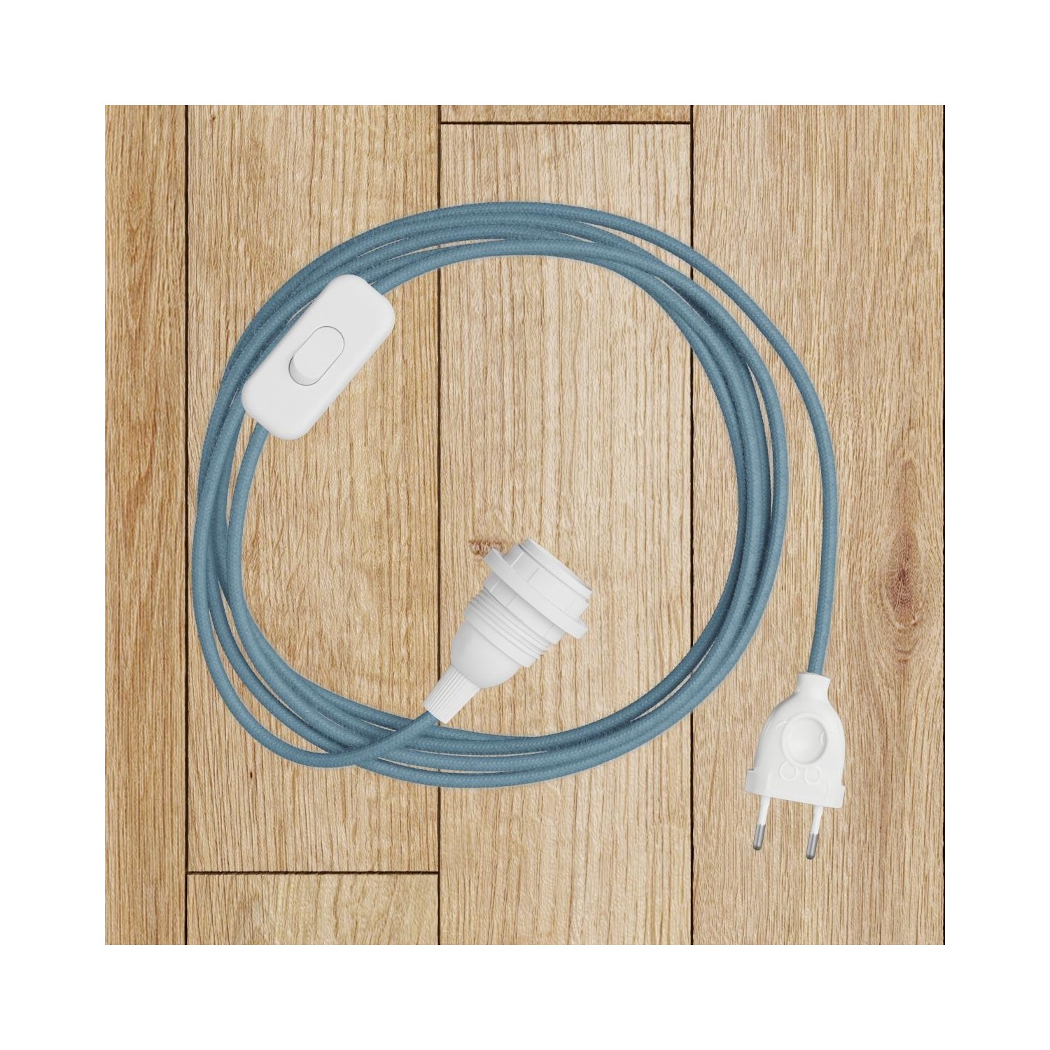 Textilkabel : 1.64m. [XZ2RC53] Elektrisches Kabel rund überzogen mit Baumwolle Einfarbig Ocean RC53 - Nr. Interne Kabel: 2x0.75
