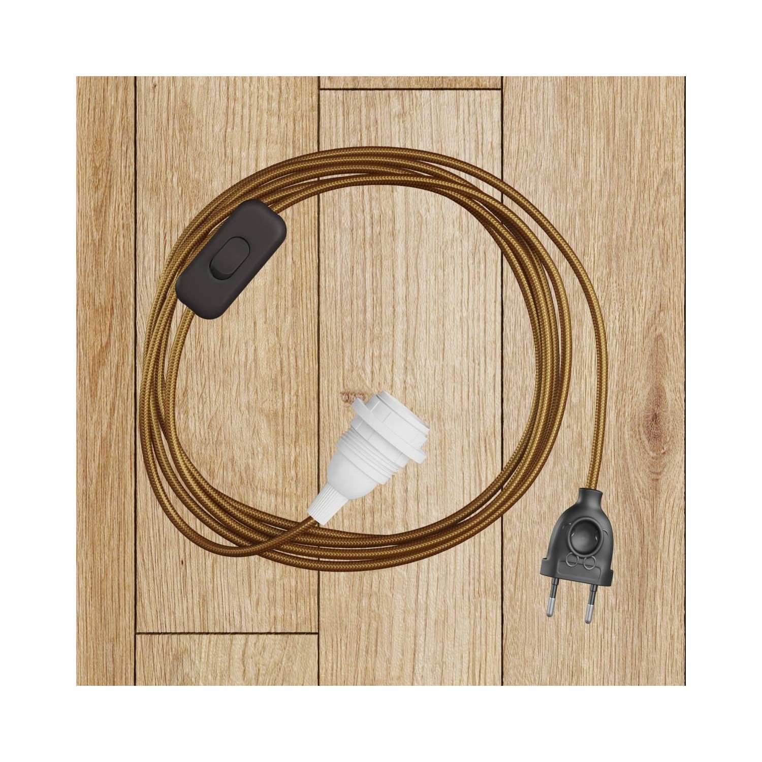 Textilkabel : 1.64m. [XZ2RM22] Elektrisches Kabel rund überzogen mit Textil-Seideneffekt Einfarbig Whiskey RM22 - Nr. Interne Kabel: 2x0.75