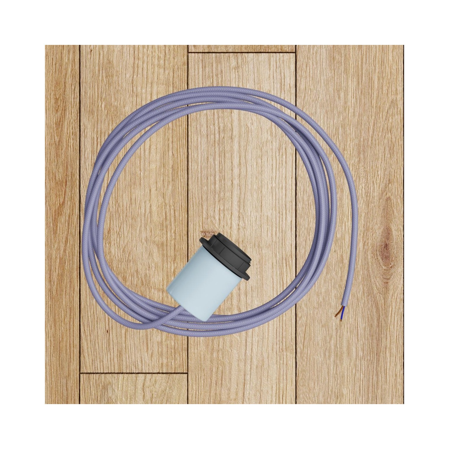 Textilkabel : 1.64m. [XZ2RM07] Elektrisches Kabel rund überzogen mit Textil-Seideneffekt Einfarbig Lila RM07 - Nr. Interne Kabel: 2x0.75