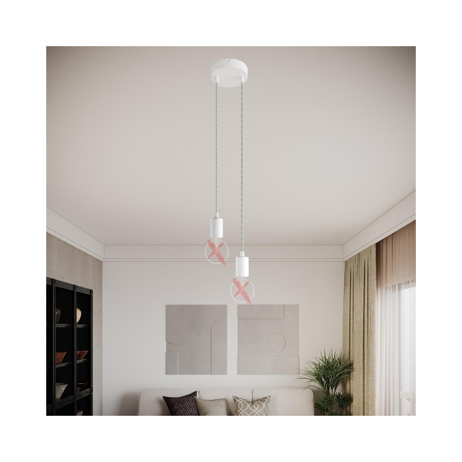 Lampenbaldachin : 1X [KRM572FVBTERP] Zylindrischer 2-Loch-Lampenbaldachin Kit aus Metall - Zugentlastung: Zylindrisch, Finish: Glänzend weiß, Smart Home: Nein