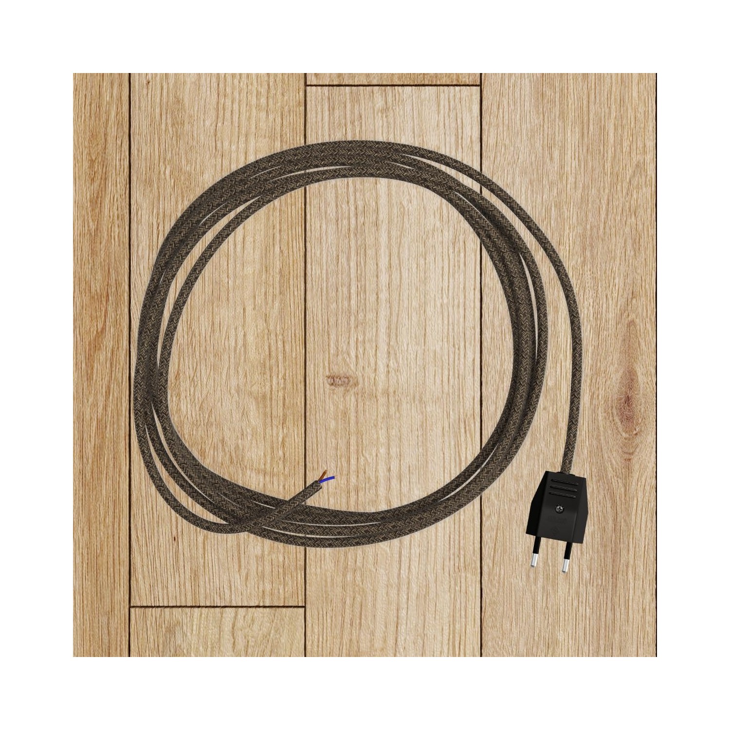 Textilkabel : 10.14m. [XZ2RN04] Elektrisches Kabel rund überzogen mit natürliches Leinen Braun RN04 - Nr. Interne Kabel: 2x0.75