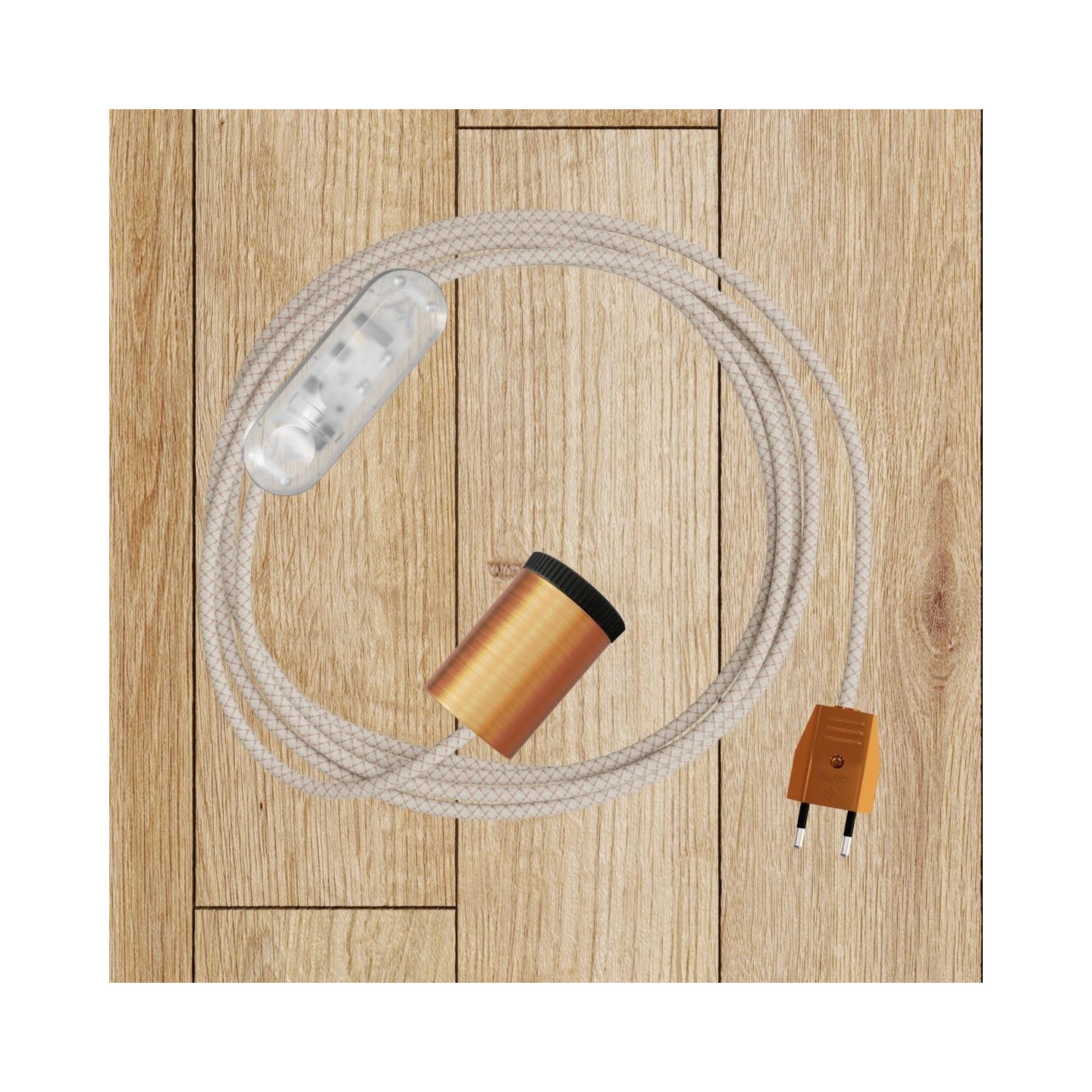 Textilkabel : 3.14m. [XZ2RD61] Elektrisches Kabel rund überzogen mit Baumwolle Raute Farbe-Antikrosa und natürliches Leinen RD61 - Nr. Interne Kabel: 2x0.75