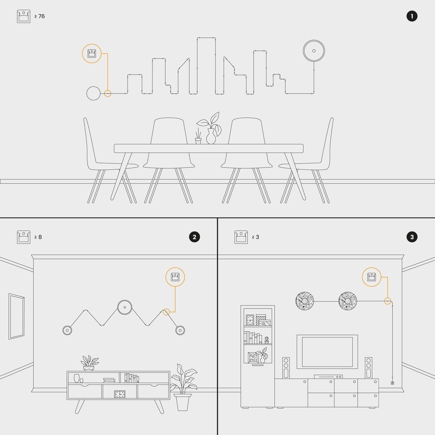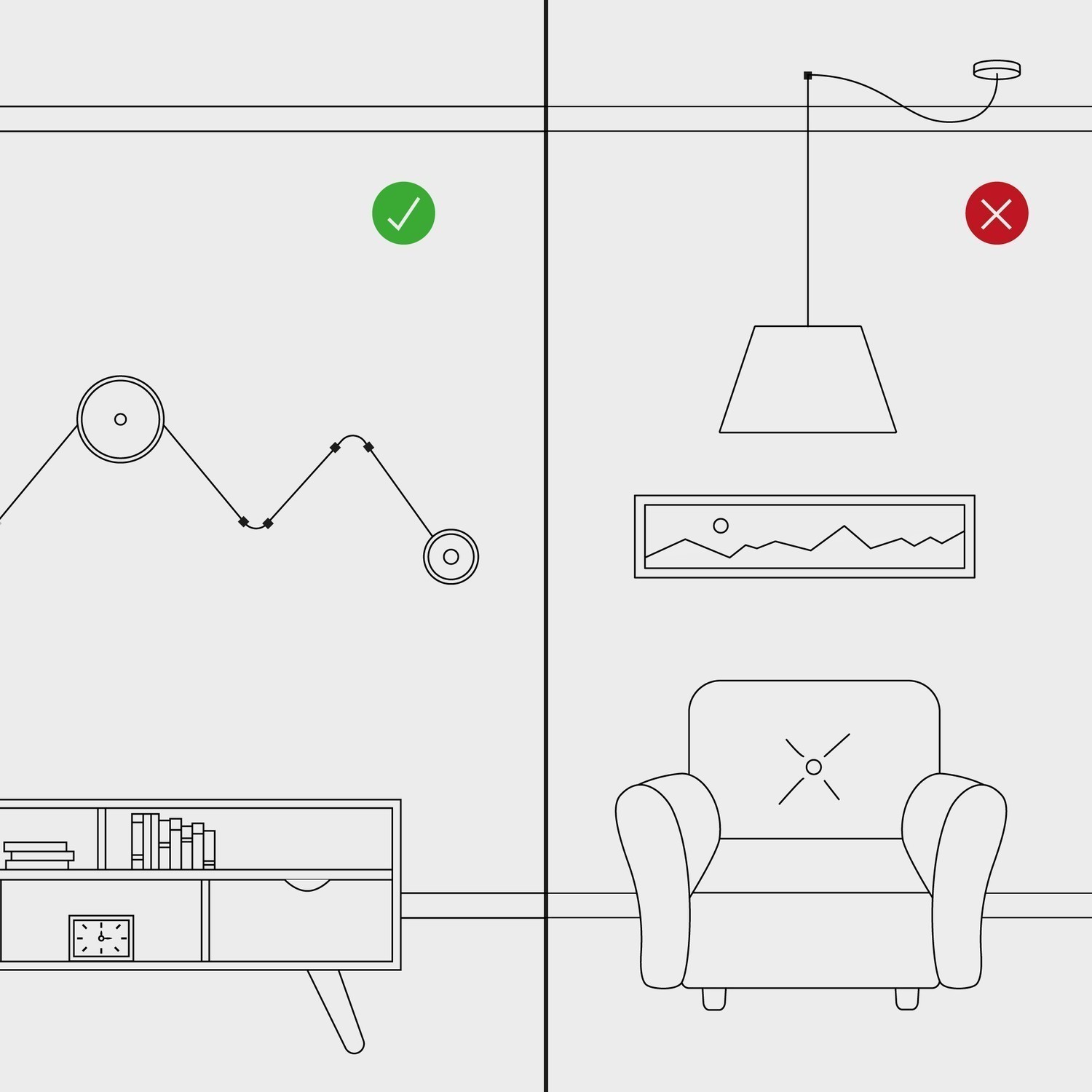Diese patentierte Kabeldurchführung richtet sich an alle, die klare und präzise Lichtführungen wünschen, bei denen die Befestigung dezent bleibt und der Fokus auf dem Verlauf des Kabels entlang von Wänden und Decken liegt.