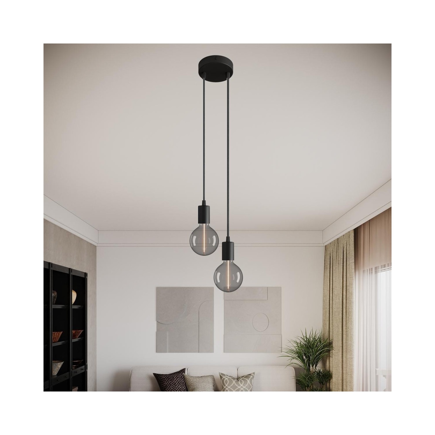Rosace : 1X [KRM572FVN] Kit rosace métallique cylindrique à deux trous - Serre-cable: Conique, Finition: Noir, Smart Home: Non