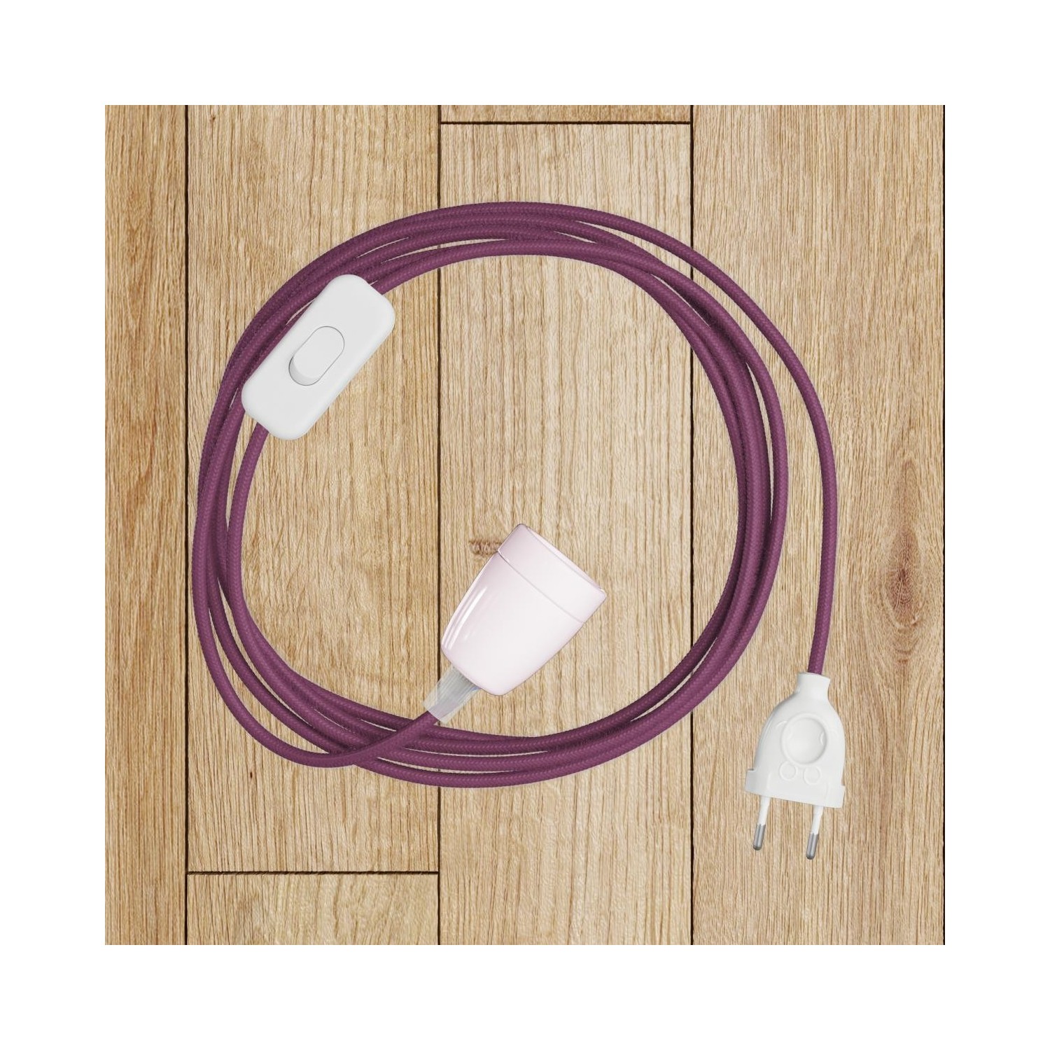 Câble textile : 3.14m. [XZ2RC32] Fil Électrique Rond Gaine De Tissu De Couleur Coton Tissu Uni Marc De Raisin RC32 - Nb de fils conducteurs: 2x0.75