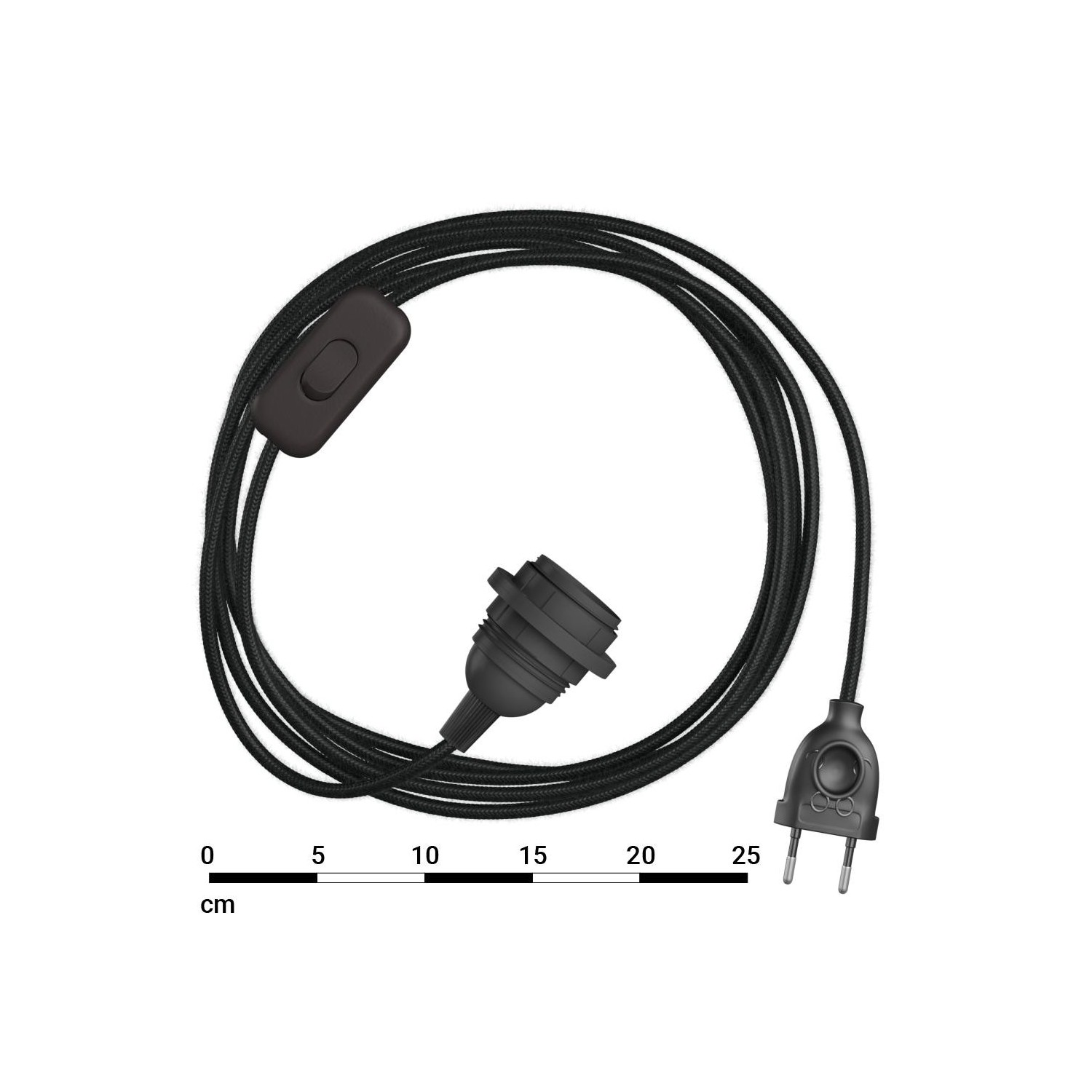 Câble textile : 3.94m. [XZ2RC04] Fil Électrique Rond Gaine De Tissu De Couleur Coton Tissu Uni Noir RC04 - Nb de fils conducteurs: 2x0.75