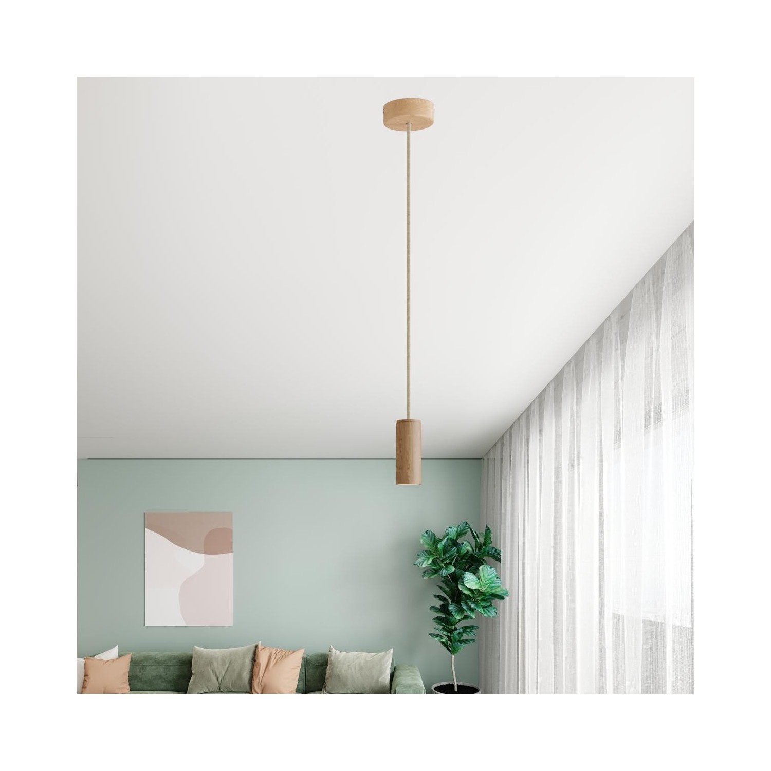 Faretto : 1X [KSPOTLE1401] Tub-E14, tubo in legno per faretto con portalampada doppia ghiera E14 - Finitura: Neutro
