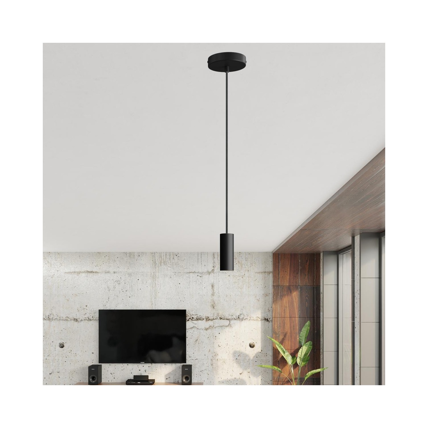 Faretto : 1X [KSPOTME14VN] Tub-E14, tubo in metallo per faretto con portalampada doppia ghiera E14 - Finitura: Nero
