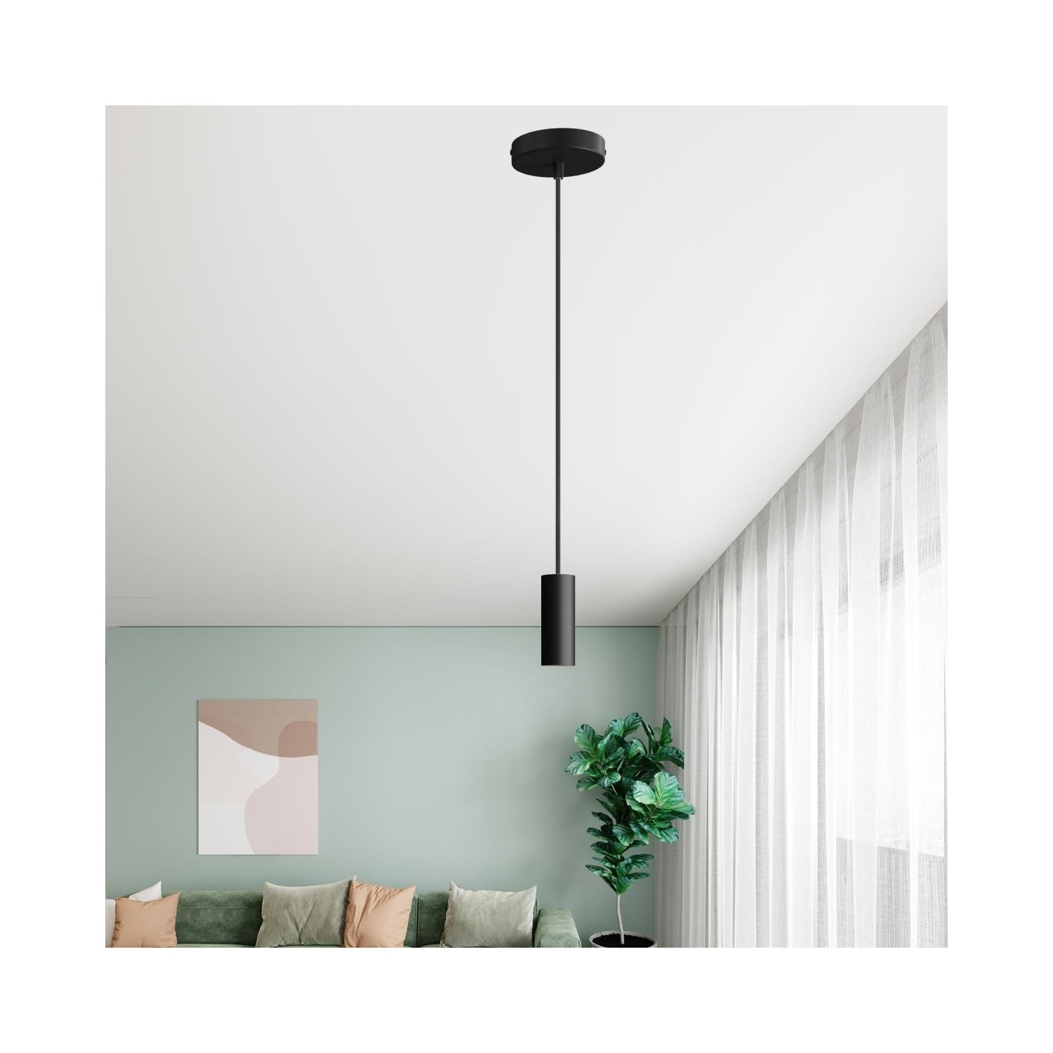 Faretto : 1X [KSPOTME14VN] Tub-E14, tubo in metallo per faretto con portalampada doppia ghiera E14 - Finitura: Nero