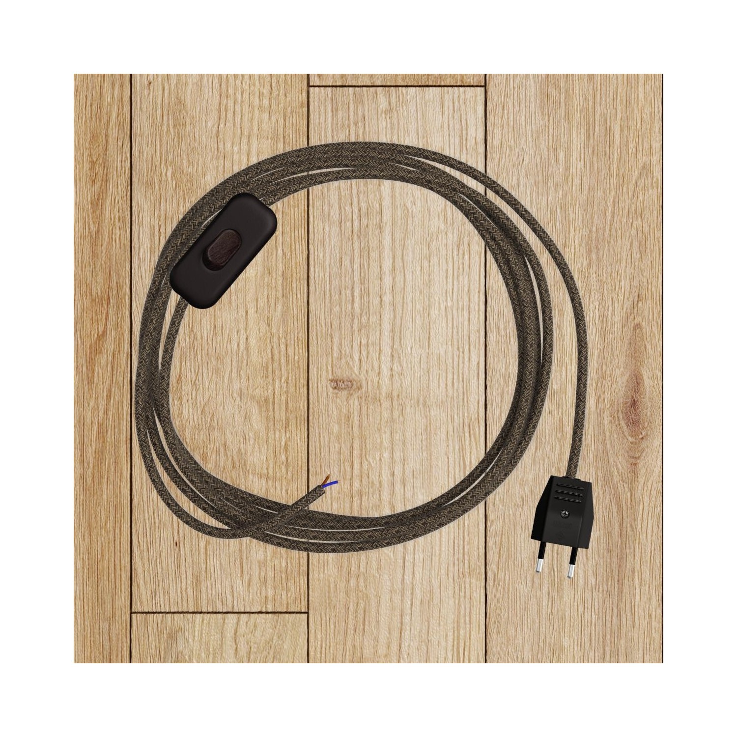 Cavo tessile : 8.14m. [XZ2RN04] Cavo Elettrico rotondo rivestito in Lino Naturale Marrone RN04 - N° Cavi interni: 2x0.75